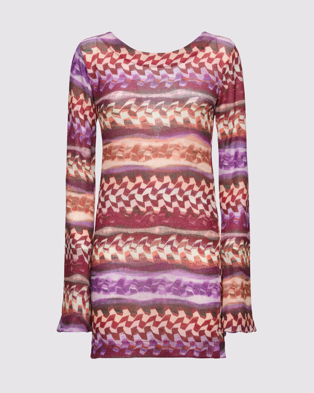 Abito corto a fantasia del brand Effek, con ampio scollo sulla schiena e vestibilità elasticizzata.