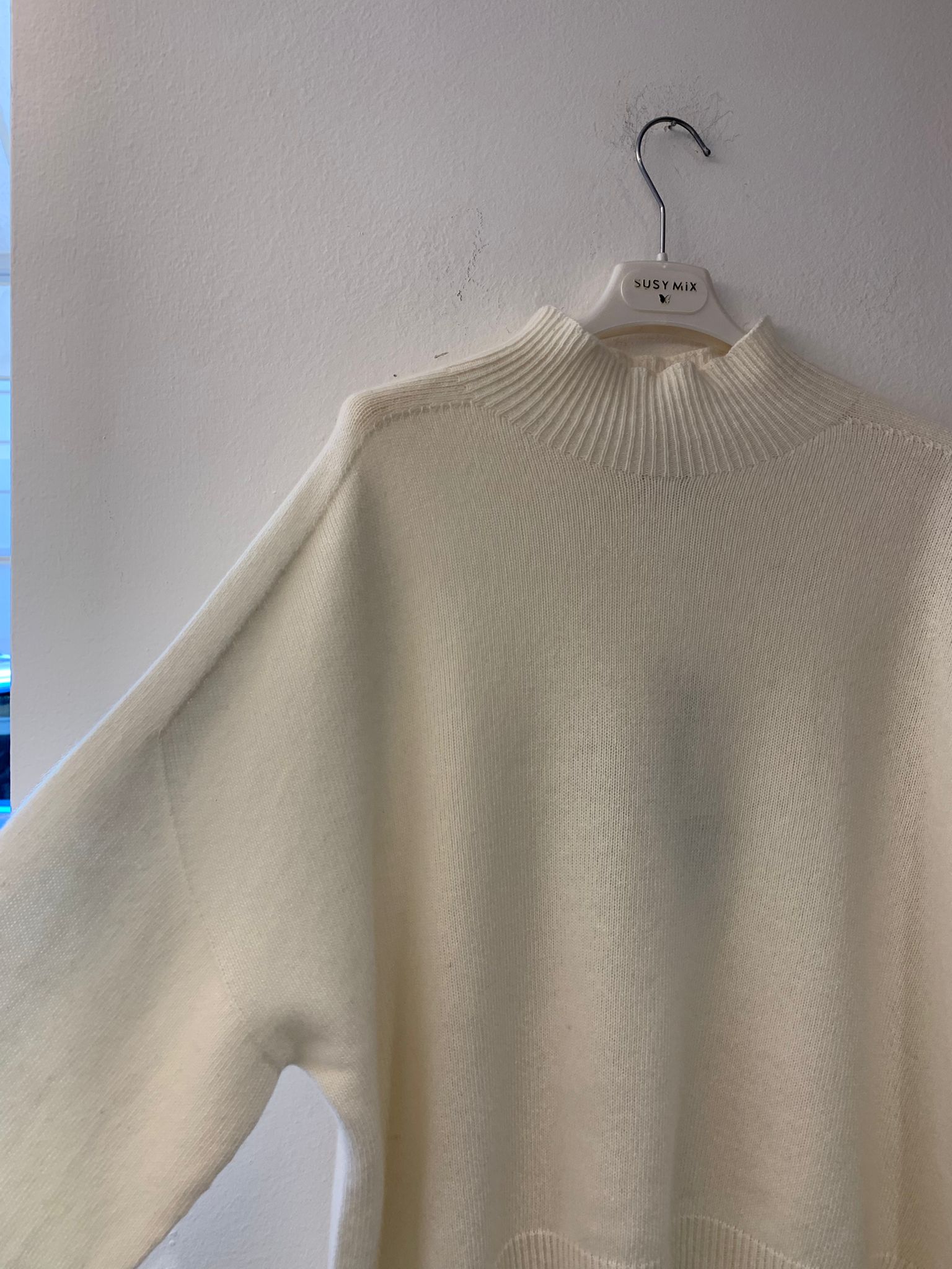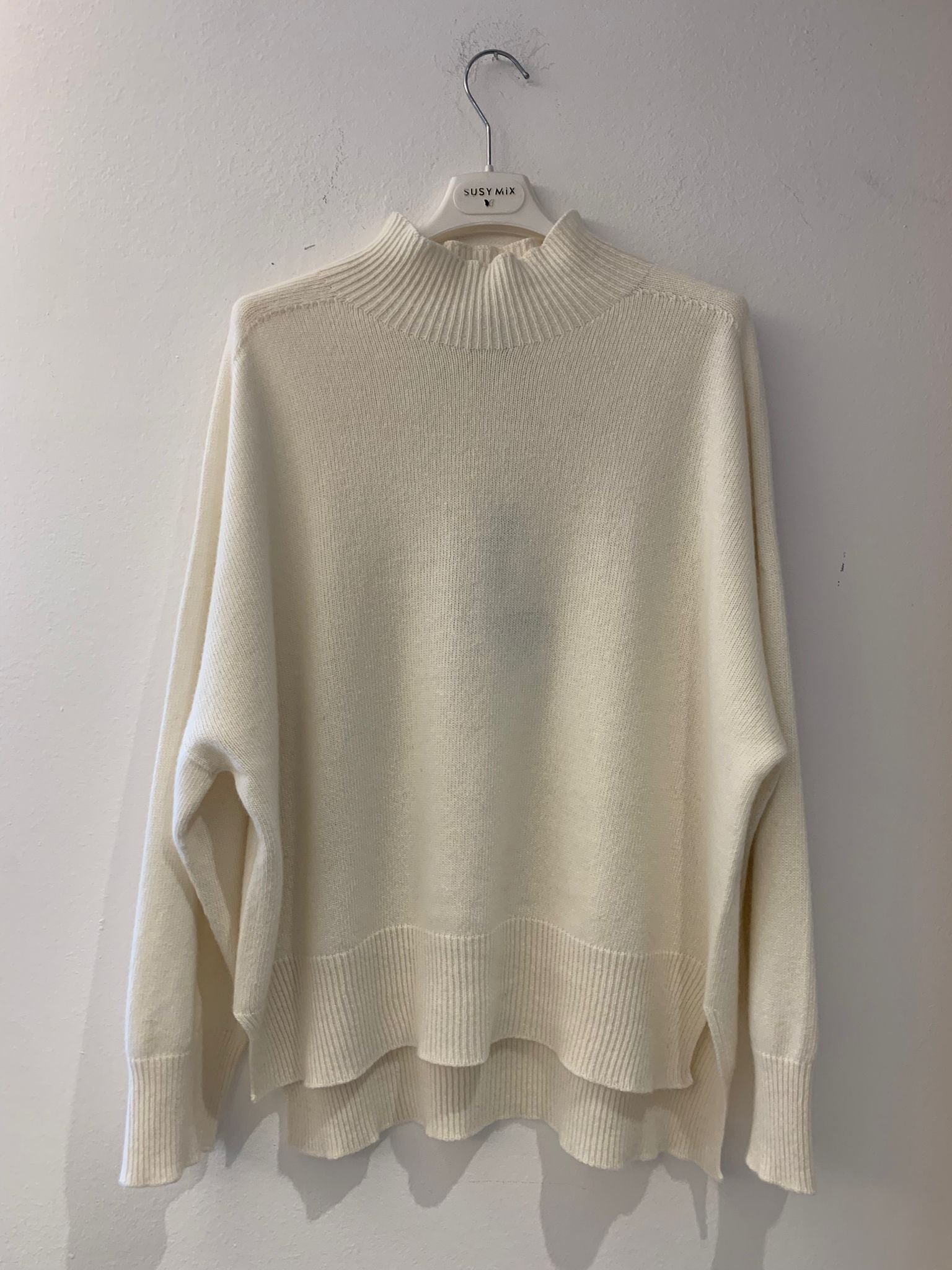 Maglione panna over con spacchi laterali di Susy Mix.