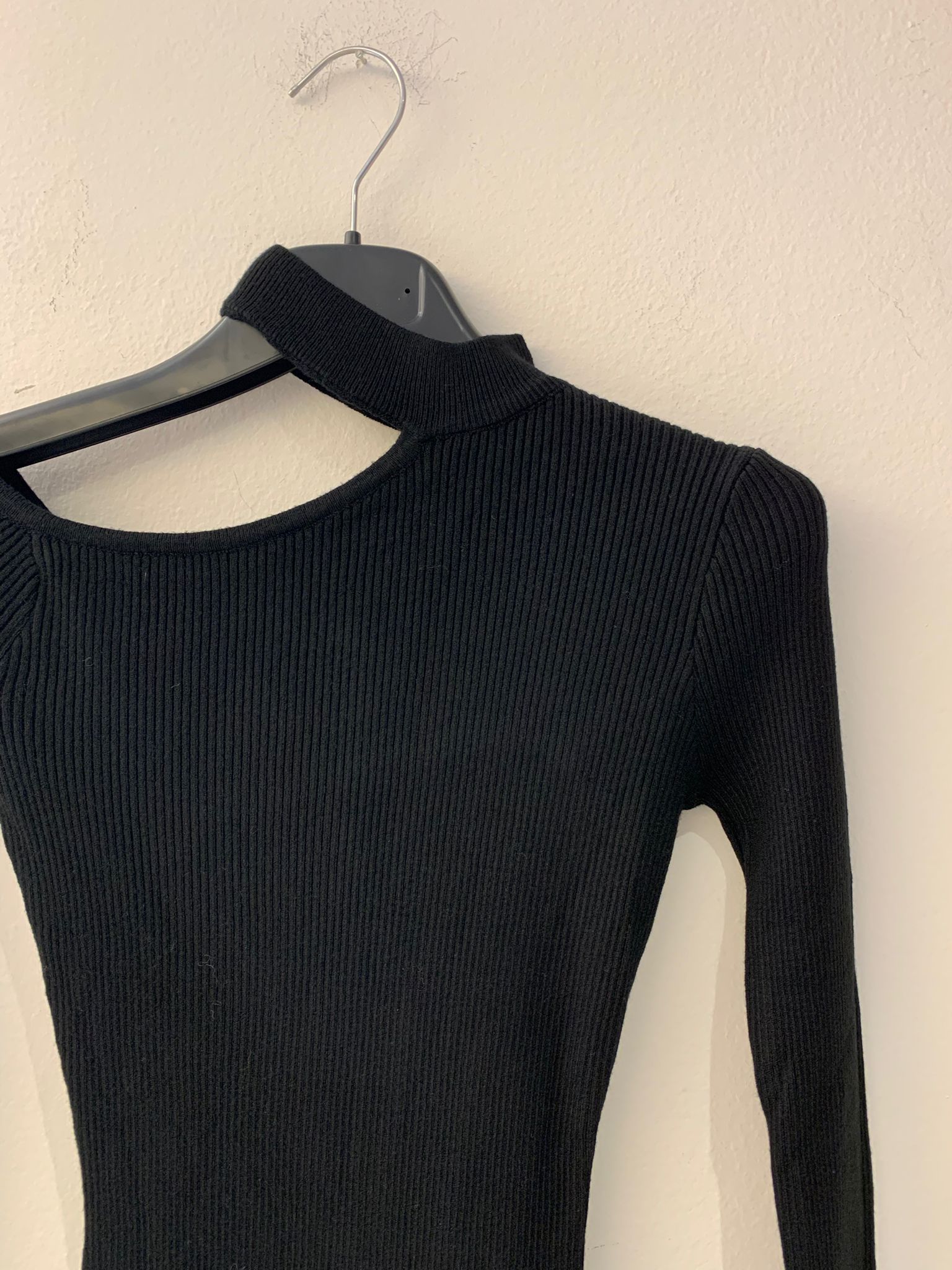 Abito a costine elasticizzato nero