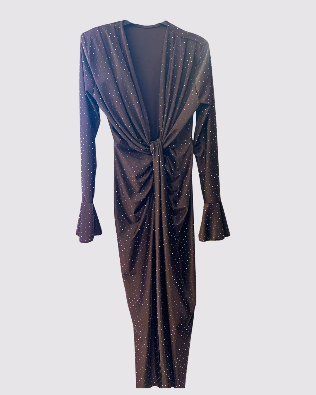 Abito lungo da sera, color marrone, taglia unica elasticizzato di Emma. Con scollo sul seno e spacco sulla lunghezza.