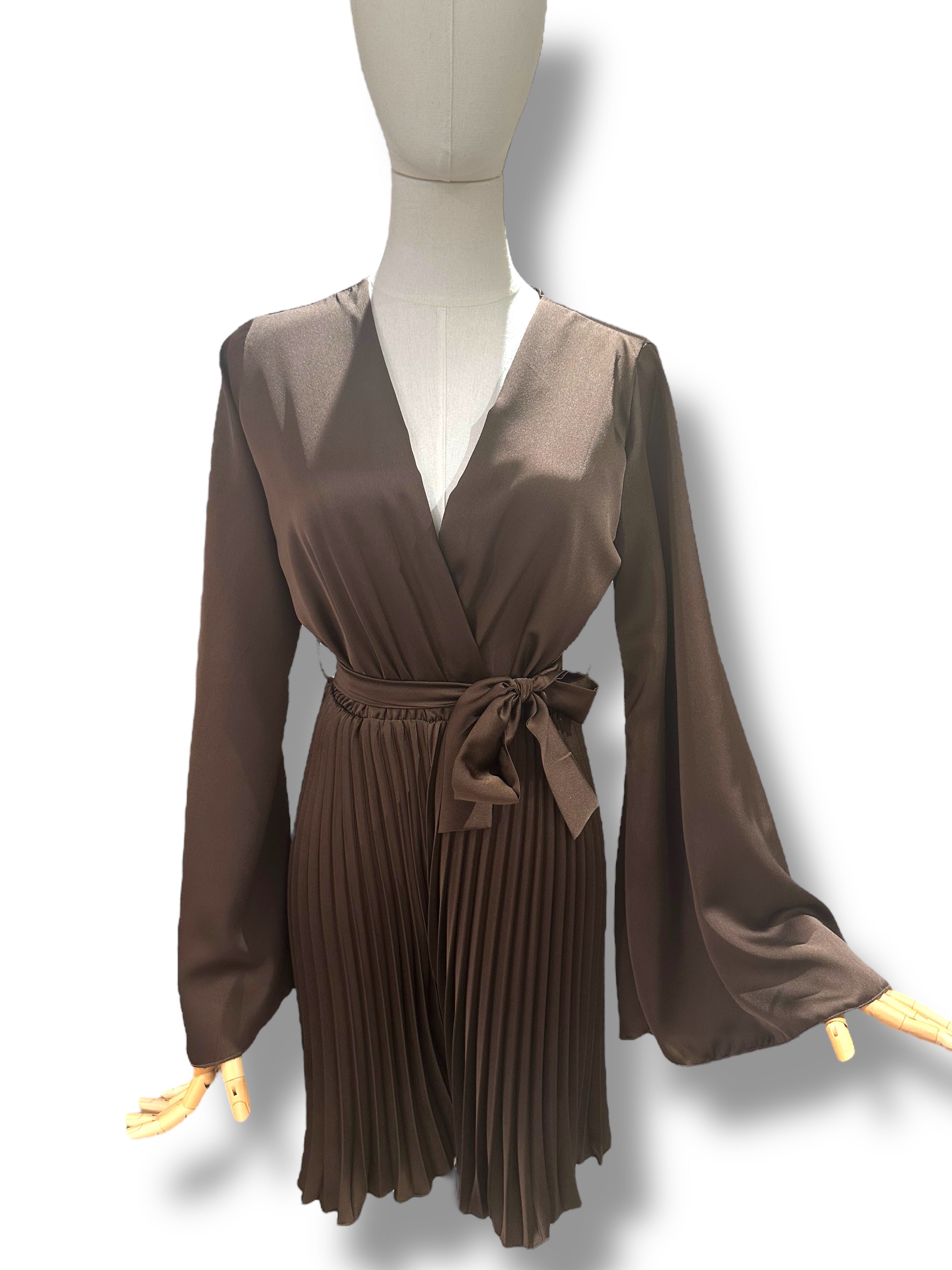 Tuta di raso tg unica elasticizzato con pantalone a balze Marrone e maniche a campana
