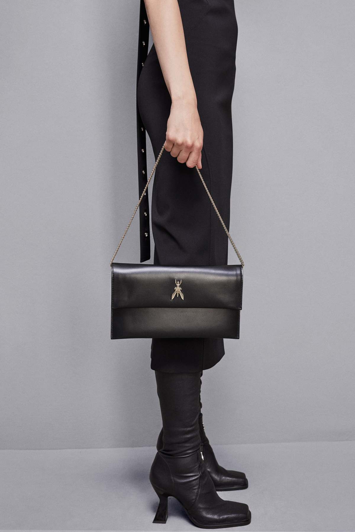 Sintesi tra funzionalità e raffinatezza, la pochette Fly è dotata di tracolla a catena per una doppia portabilità. Il logo Fly impreziosisce la patta con un dettaglio distintivo. Perfetta per le occasioni speciali, ma anche per dare un tocco sofisticato ai look di tutti i giorni.