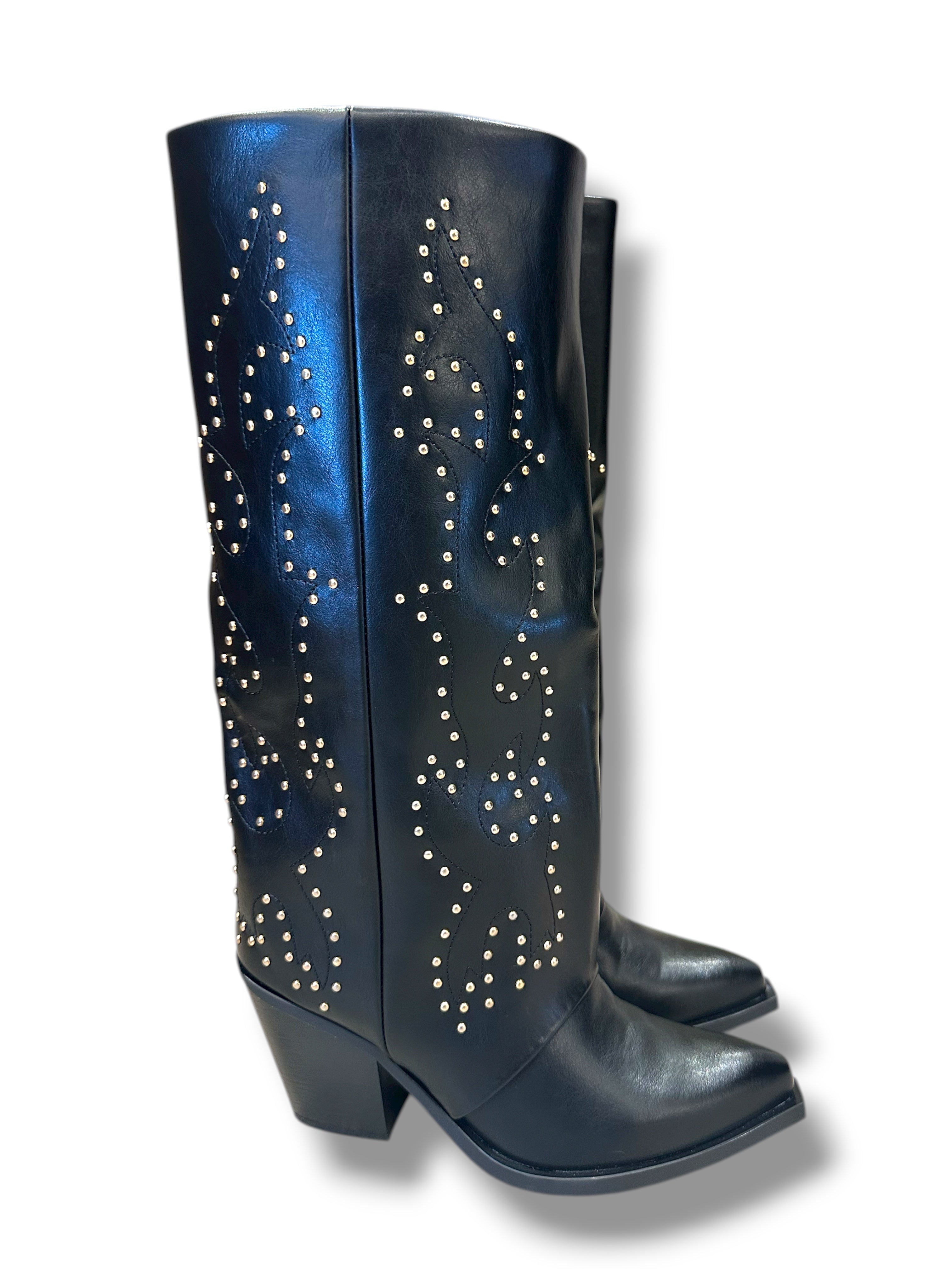 Stivali Neri con Borchie Susy Mix e Risvolto
