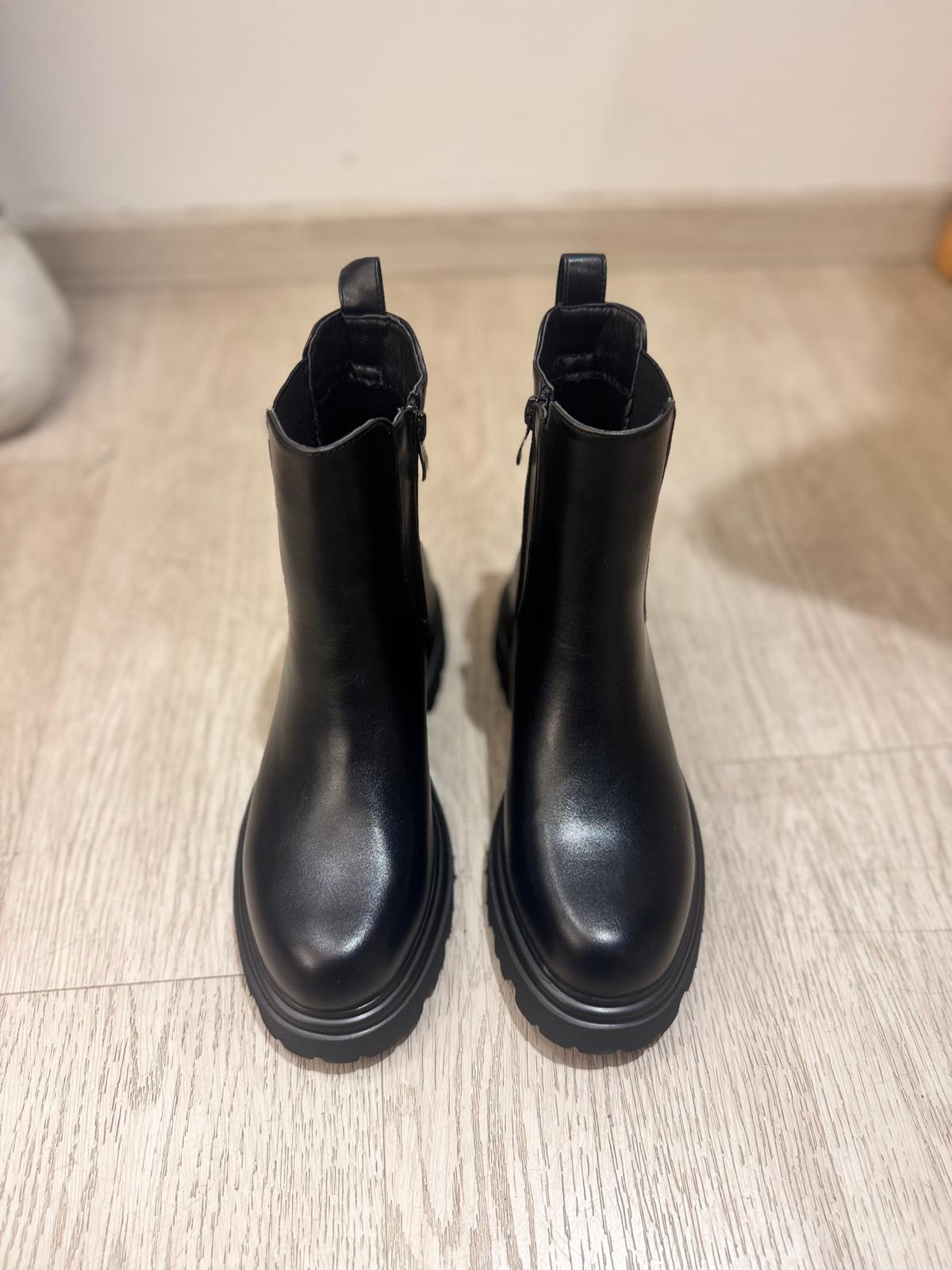 Stivale modello Polacchino nero. Calzata regolare con fibbie.