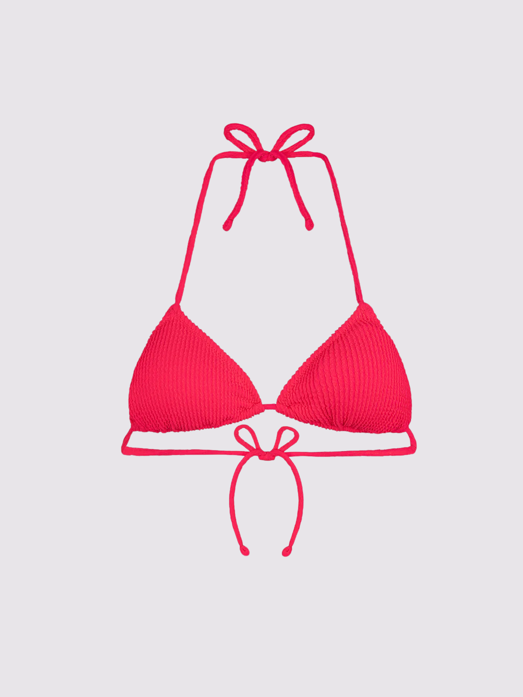 Top bikini a triangolo regolabile, realizzato in Lycra goffrata, un tessuto elasticizzato e confortevole che offre una vestibilità perfetta e un tocco di eleganza. L’imbottitura interna estraibile permette di adattare il supporto in base alle proprie esigenze.